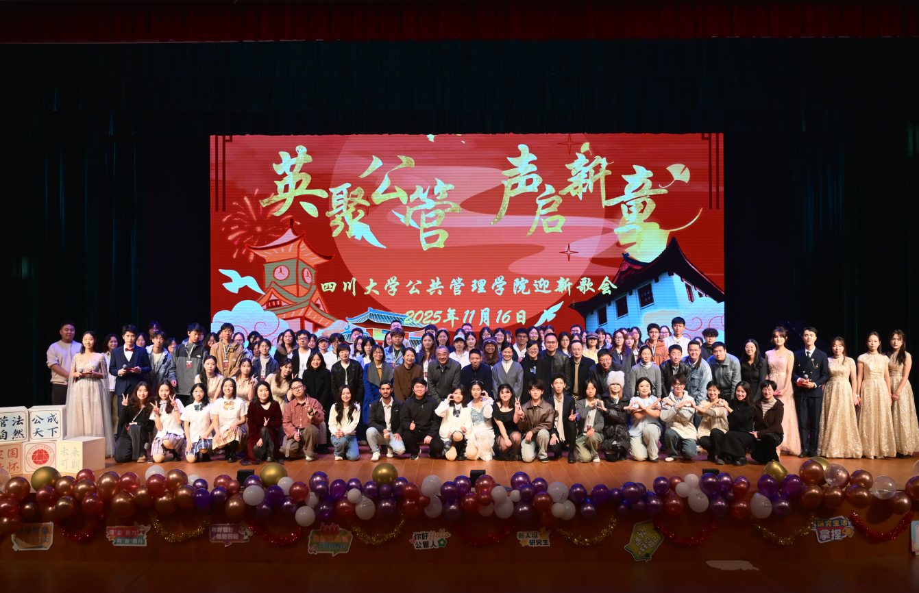 11月16日晚,四川大学公共管理学院2025年“英聚公管,声启新章”迎新歌会在江安校区多学科交叉融合平台与艺术教育中心报告厅温情开演,学院全体领导班子成员,各系教师代表,行政与学工系统教师,2025级新生及老生代表参加。