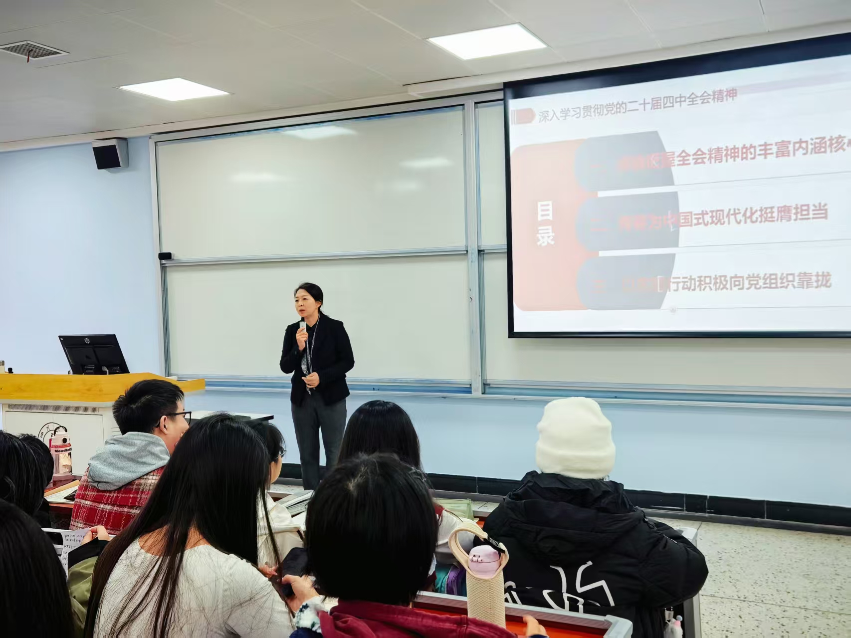 为深入学习贯彻党的二十届四中全会精神,引导新生积极向党组织靠拢,在中国式现代化建设中贡献青春力量,2025年11月21日下午,公共管理学院“追逐梦想,我心向党”新生入党启蒙主题党课在江安校区一教B204教室和D503教室同步举行。公共管理学院党委书记王彬、专职组织员廖海燕分别担任主讲人,2025级全体本科学生参加,活动由本科低年级党支部组织。