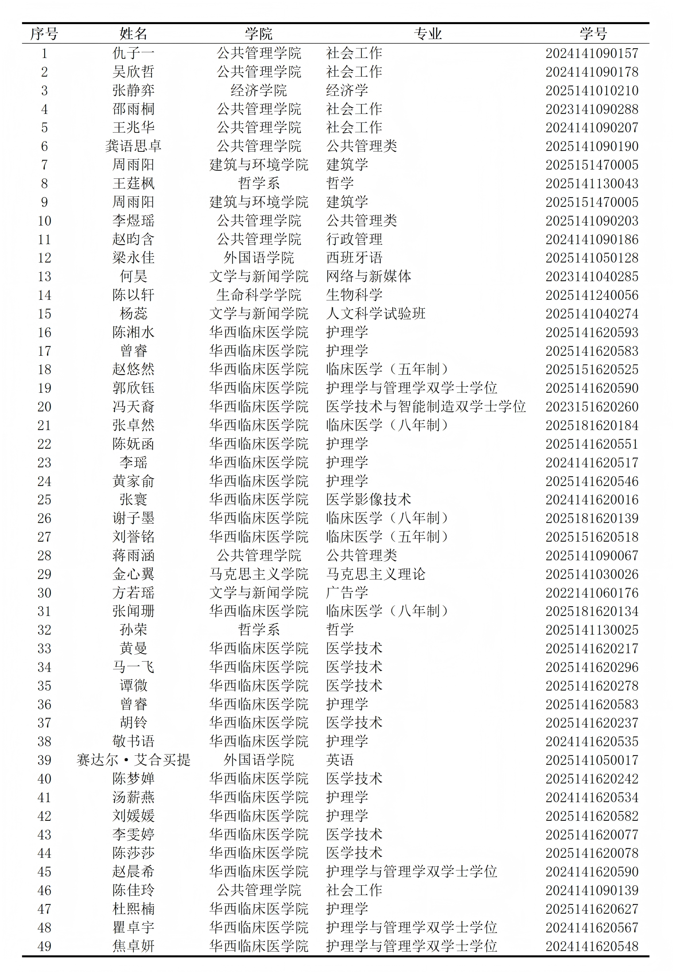 根据《四川大学微专业项目实施办法》《四川大学医务社会工作微专业招生简章》相关规定,经微专业教学组老师对报名学生的综合考量,2026年“医务社会工作”微专业拟录取名单已确定,现予以公示,公示时间为2026年3月30日至4月5日。