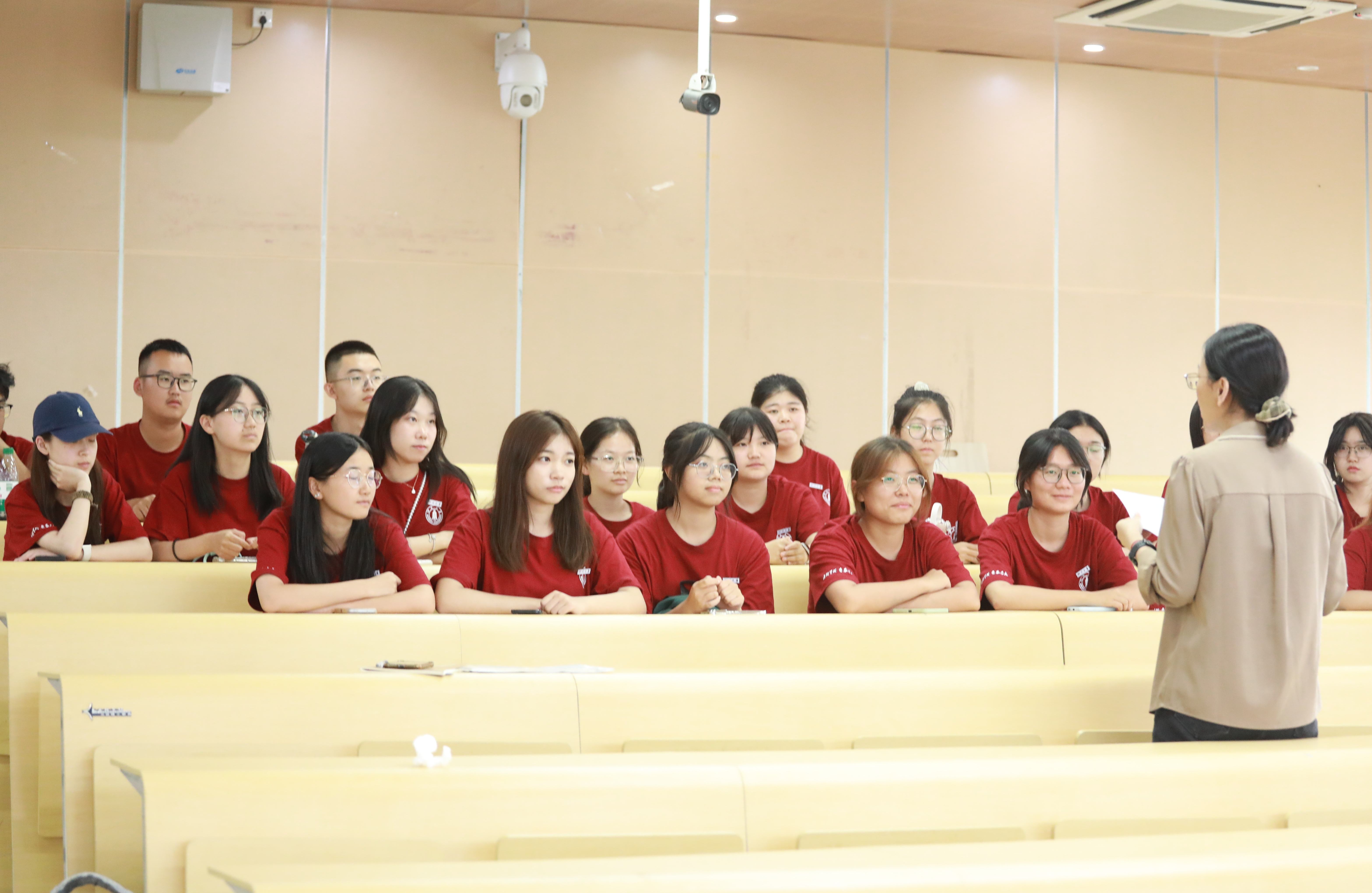 王老师围绕大学适应、目标规划、时间管理与人际交往四大维度展开演讲。王老师建议新生主动参与校园活动,建立归属感,同时保持与家人定期沟通,缓解思乡情绪;学生在遇到困惑时应积极寻求帮助,而非自我压抑。王老师引导学生思考短期与长期发展方向,进行合理的时间管理;最后,关于人际交往,王老师强调尊重差异、真诚沟通的重要性,鼓励学生主动结识不同专业背景的同学,拓宽视野,构建支持性人际关系网络。她还特别提醒学生,大学不仅是知识积累的阶段,更是人格塑造与价值观成熟的关键期,面对多元思潮应保持独立思考,坚守道德底线。王老师鼓励同学们养成深度阅读与定期自省的习惯,注重批判性思维与价值观塑造的深度融合,鼓励学生在阅读中追问本质、辨析立场,通过读书会、跨学科对话等形式构建独立思考能力。