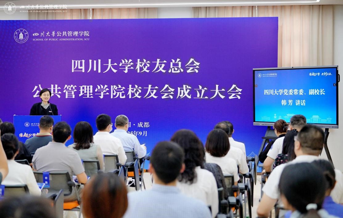 9月27日下午,四川大学校友总会公共管理学院校友会成立会议在望江校区萃文楼举行,学校党委常委、副校长韩芳,学校校友总会副秘书长贾秀娥,学院校友代表、学院部分师生线上线下100余人参加会议。